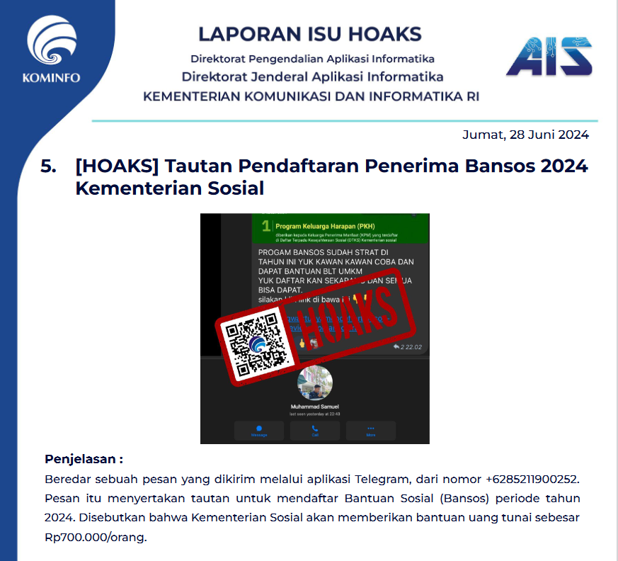 Selalu pastikan bahwa informasi yang Anda terima berasal dari sumber yang tepercaya. Jangan langsung percaya pada pesan yang mengklaim berasal dari pemerintah atau lembaga resmi tanpa verifikasi lebih lanjut.