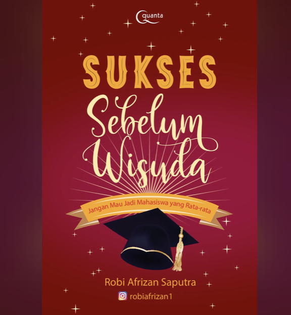 Kiat Sukses Sebelum Wisuda. Banyak mahasiswa menganggap bahwa kesuksesan dimulai setelah mengenakan toga dan memegang ijazah di tangan. Faktanya, kesuksan tidak perlu menunggu momen wisuda tiba. Justru, masa kuliah adalah waktu terbaik untuk mulai membangun fondasi kesuksesan masa depanmu. Buku “Sukses Sebelum Wisuda” karya Roby Afrizan Saputra dengan jelas dan inspiratif menjelaskan bagaimana cara mahasiswa bisa mengoptimalkan potensi mereka sejak dini.